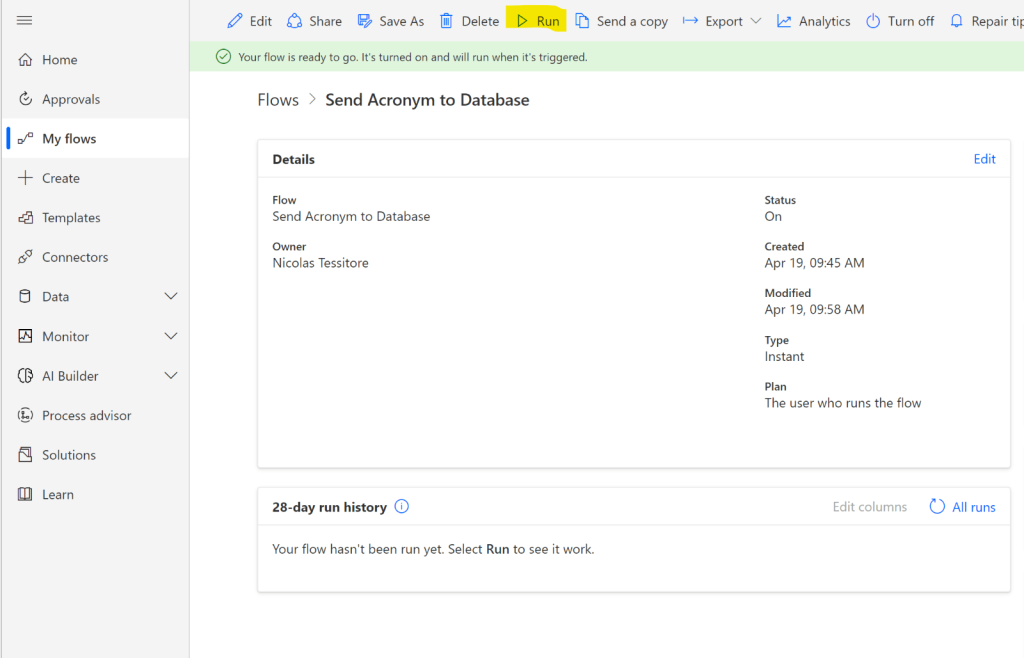 7. Run the Flow